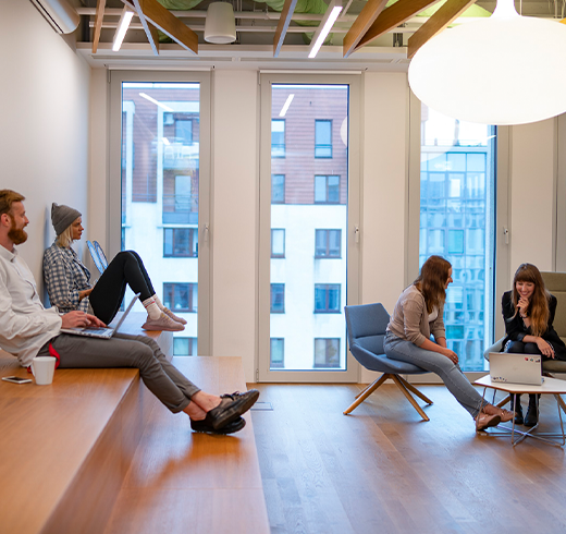 Este es un lugar de trabajo colaborativo y social con un enfoque en el bienestar. Damos importancia a las redes y relaciones, no a la estructura y el proceso.